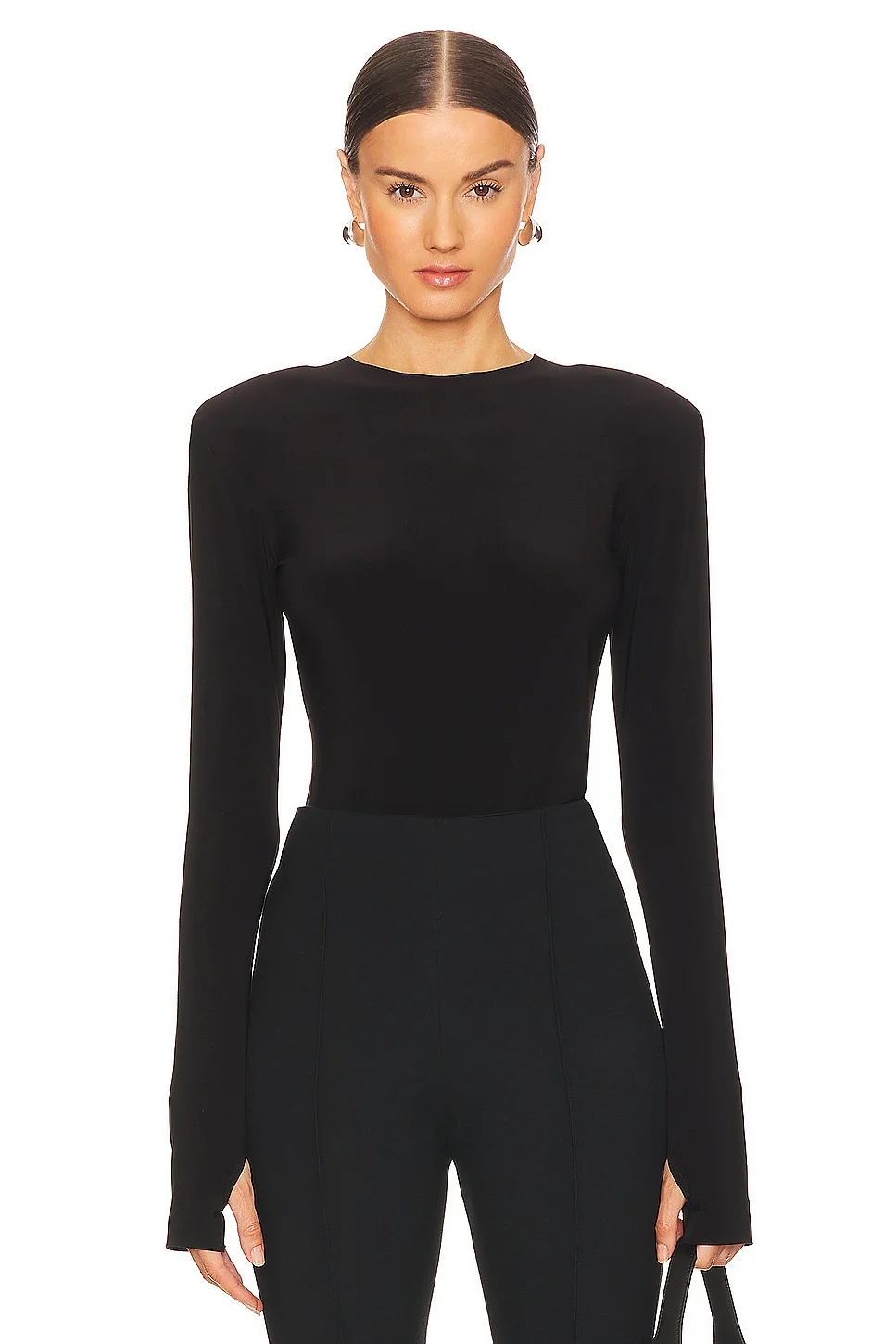 - 95% polyester 5% spandex - Made in China - Made in USA - Machine wash - Padded shoulders - Thumbhole design - Jersey fabric - style runs large, size down - Revolve Style No. NKAM-WS242 - Manufacturer Style No. KK1206PL046001