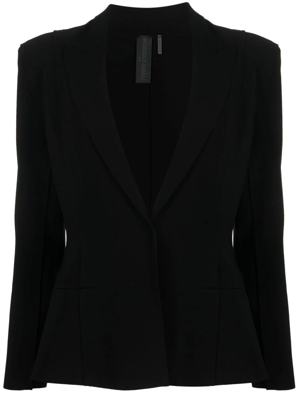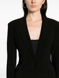single-breasted tailored blazer Highlights - Black - Dart detailing - Tailored cut - Peak lapels - Concealed front fastening - Long sleeves - Two front jetted pockets - American rear vent Imported Composition Polyester 95%, Elastane 5% SIZE & FIT Model measurements Height 5 ft 10 in(1.78 m) Bust/Chest 31.49 in(80 cm) Hips 36.22 in(92 cm) Waist 25.59 in(65 cm) FittingInformation Designed for a slim fit that sits just away from the body offering a close yet comfortable fit The internal shoulder pads offer a structured shape Made from a midweight stretch fabric, this piece offers elasticity and flexibility when worn This piece fits true to size – take your usual size Washing instructions Machine Wash