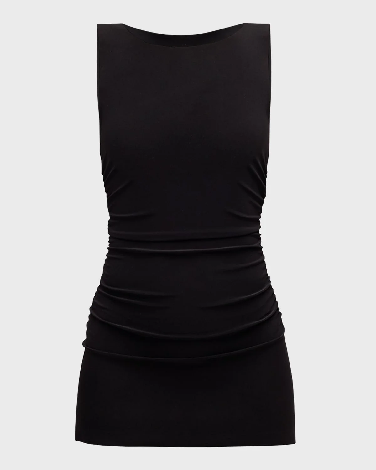 Norma Kamali pickleball dress with a built-in stretch bodysuit and clean-cut edges Crew neckline Sleeveless Shirred sides Bodycon fit Mini length Pullover style Polyester/spandex Imported Model is 5 & apos;10"/177cm.