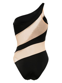 Snake Mesh Mio one-shoulder swimsuit black stretch-design panelled design semi-sheer mesh panelling asymmetric neck one-shoulder slip-on style Be mindful to try on swimwear over your own garments. Imported Composition Nylon 72%, Spandex/Elastane 28% Washing instructions Machine Wash