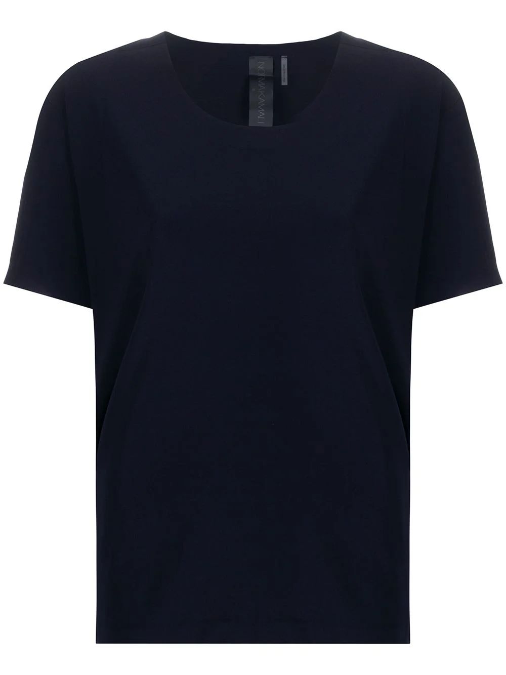 solid-color T-shirt Midnight blue solid-color T-shirt from Norma Kamali featuring a round neck, short sleeves and a straight hem. Imported Composition Polyester 95%, Elastane 5% SIZE & FIT FittingInformation This piece fits true to size. We recommend you get your regular size Cut for a loose fit Made with a mid-weight stretch fabric Washing instructions Hand Wash