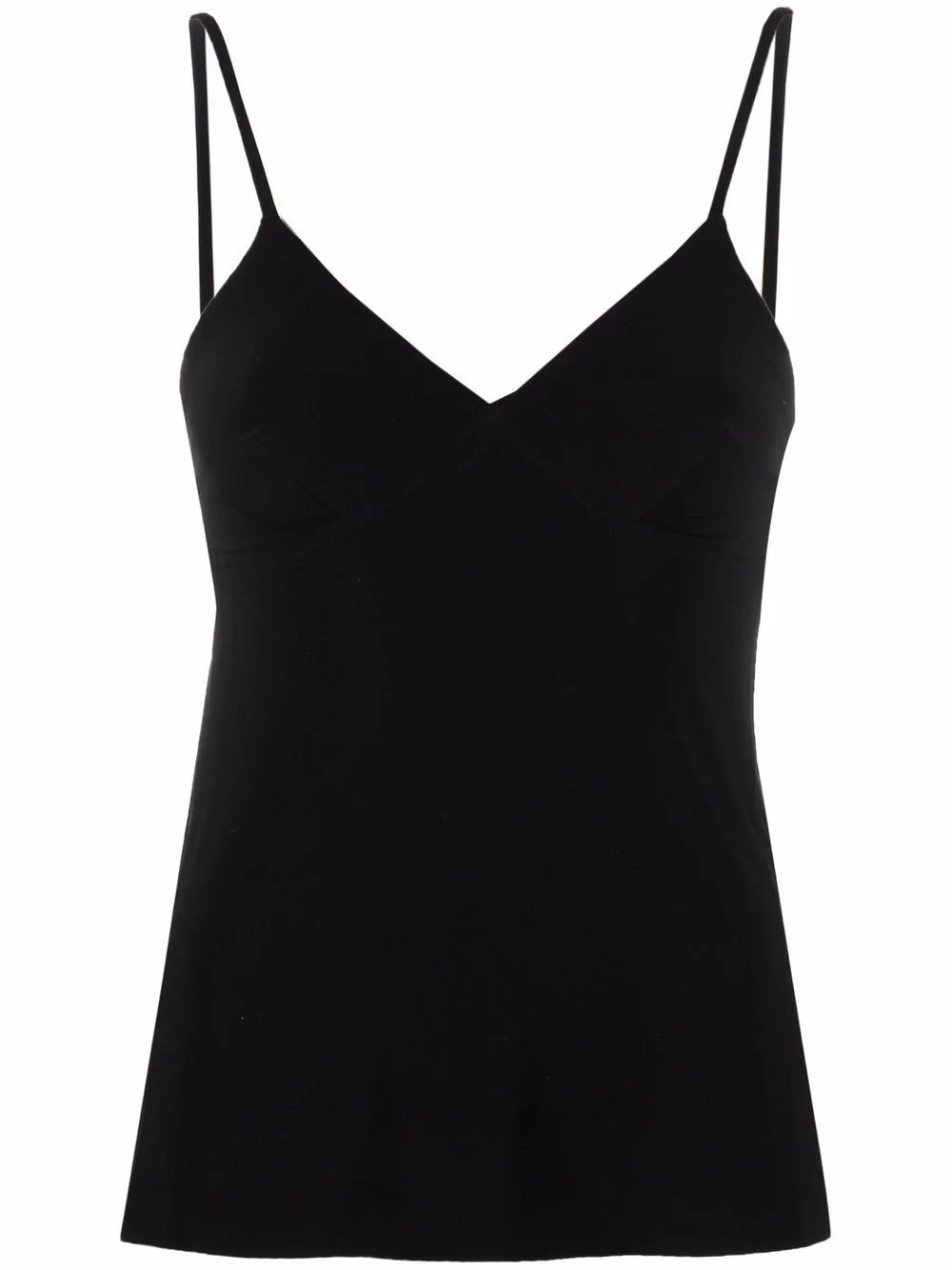 spaghetti-strap top black spaghetti straps V-neck straight hem Imported Composition Polyester 95%, Spandex/Elastane 5% SIZE & FIT Model measurements Height 5 ft 9 in(1.74 m) Bust/Chest 32.28 in(82 cm) Hips 35.82 in(91 cm) Waist 24.01 in(61 cm) FittingInformation This piece fits true to size. We recommend you get your regular size Cut for a slim fit Made with a mid-weight stretch fabric