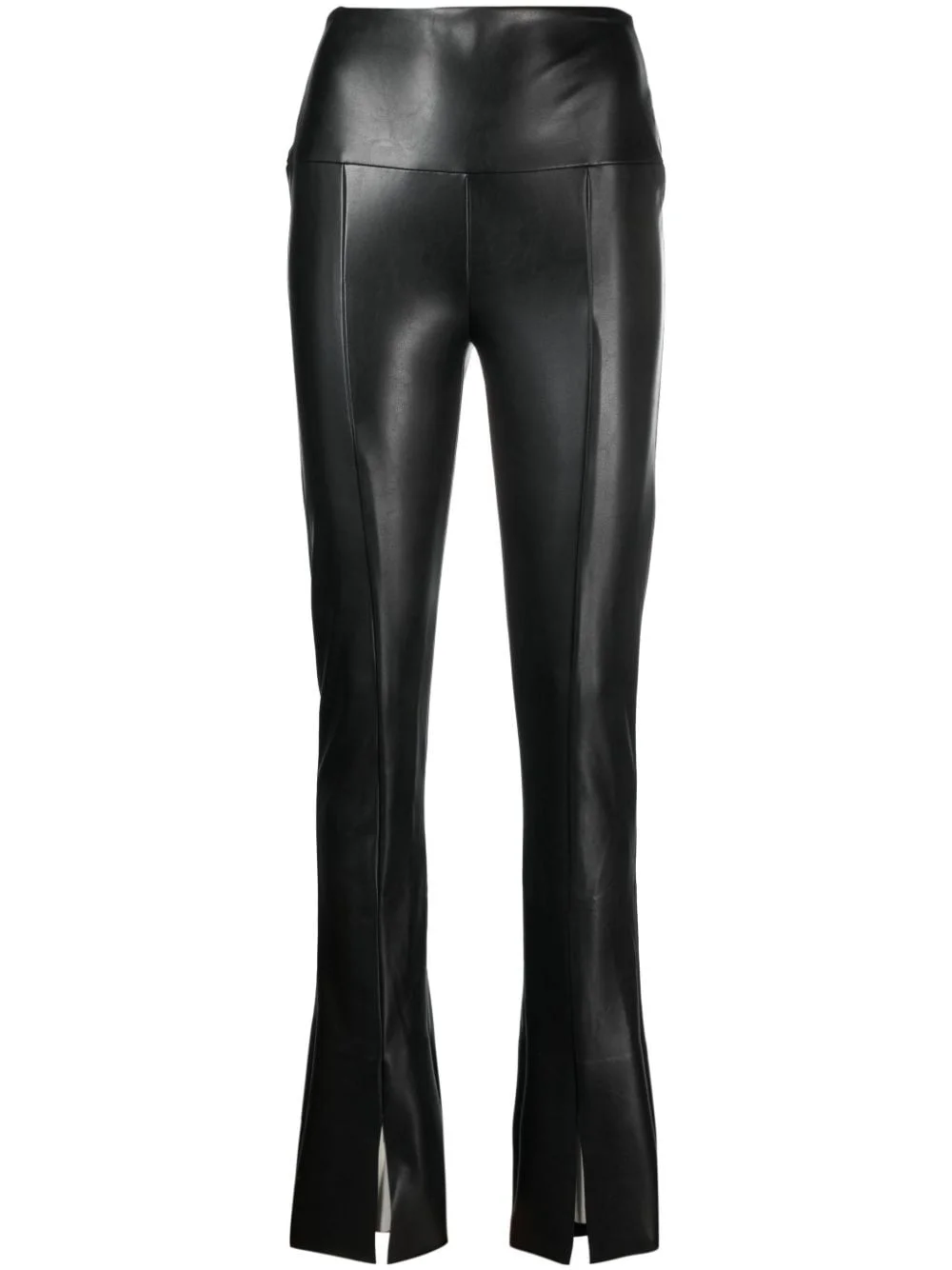 faux-leather skinny trousers Highlights - Black - Faux leather - Stretch-design - High waist - Short side slits - Skinny cut - Flared design Imported Composition Polyurethane 100%, Polyester 90%, Spandex/Elastane 10% SIZE & FIT Model measurements Height 5 ft 10 in(1.78 m) Bust/Chest 33.07 in(84 cm) Hips 36.61 in(93 cm) Waist 24.8 in(63 cm) Measurement INSIDE LEG 33.46 in(85 cm) HIPS 29.13 in(74 cm) WAIST 20.47 in(52 cm) FittingInformation Designed with a flared hem, these trousers allow for a close fit at the waist with a slim fit over the leg and widening towards the hem Made from a midweight stretch fabric, this piece offers elasticity and flexibility when worn This piece fits true to size – take your usual size Washing instructions Machine Wash