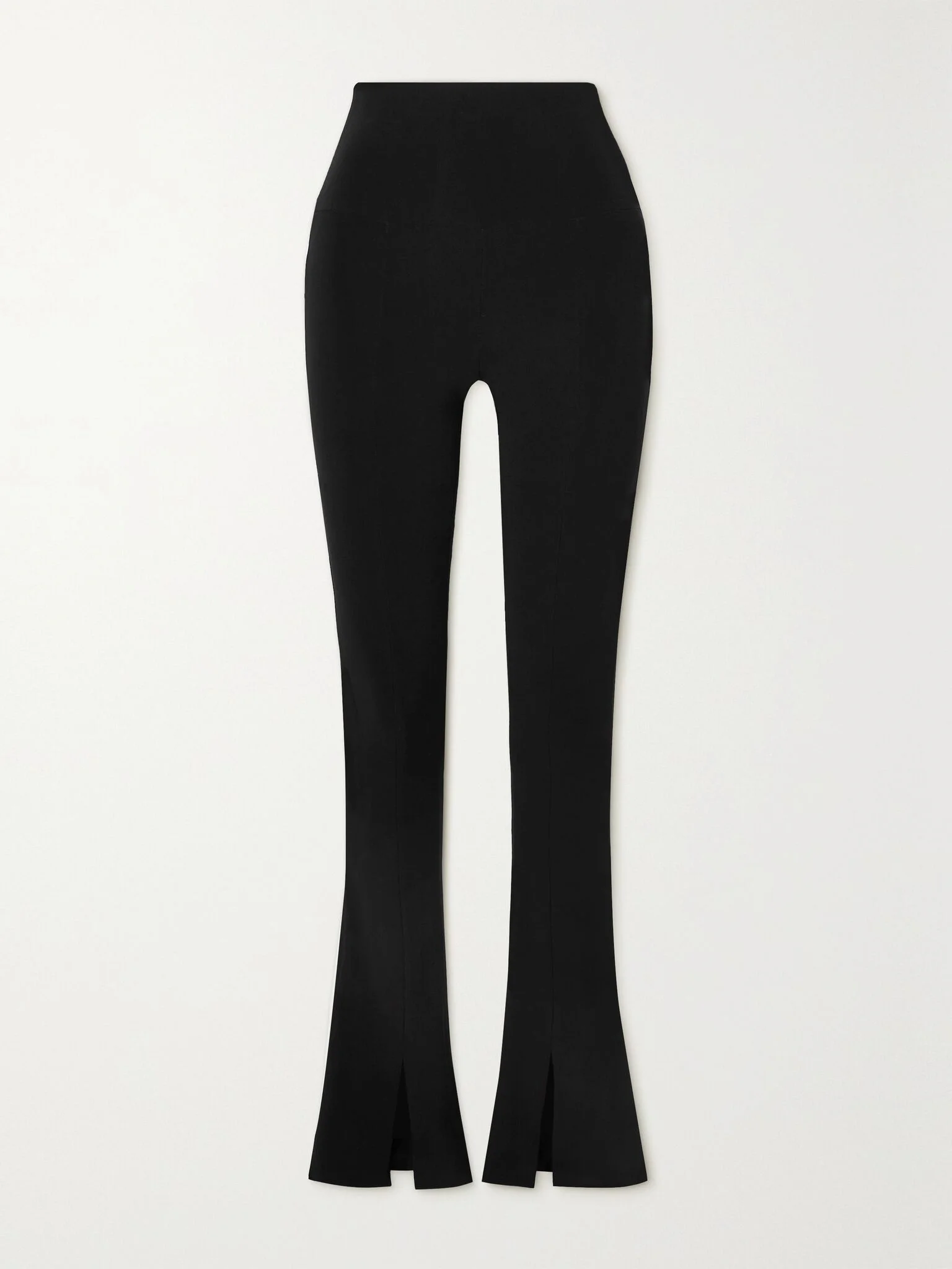 Norma Kamali's 'Spat' leggings have dramatically flared hems emphasized by splits and a structured lining. Made from really soft stretch-jersey, they're cut with a high-rise waist and fit slim through the legs. Style yours with a chunky sweater and point-toe pumps. Details & Care - Black stretch-jersey - Pull on - 95% polyester, 5% spandex - Hand wash - Imported