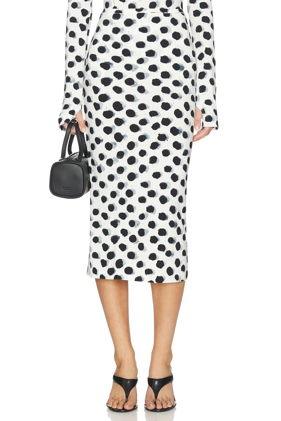- 95% polyester 5% elastane - Made in China - Machine wash cold - Unlined - Pull-on styling - Stretch jersey fabric - Garment is made with a semi-sheer fabric, undergarments can show through - Skirt measures approx 28" in length - style runs large, size down - Revolve Style No. NKAM-WQ100 - Manufacturer Style No. KK225SPLQ70423