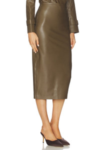 - Self 1: 100% polyurethane Self 2: 95% polyester 5% elastane - Machine wash - Unlined - Hidden back zipper closure - Faux leather fabric with back vent - Item not sold as a set - style runs large, size down - Waist to shortest hem measures approx 21" and to longest hem approx 31" in length - Revolve Style No. NKAM-WQ91 - Manufacturer Style No. ST325SLVQ70867