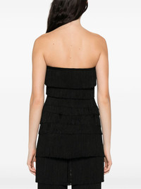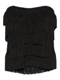 fringed strapless tank top Highlights - Black - Strapless - Sweetheart neck - Fringe detailing Made in United States Composition Polyester 95%, Elastane 5% SIZE & FIT Model measurements Height 5 ft 11 in(1.8 m) Bust/Chest 32.28 in(82 cm) Hips 36.22 in(92 cm) Waist 25.19 in(64 cm) Washing instructions Read Manufacturer Guidelines