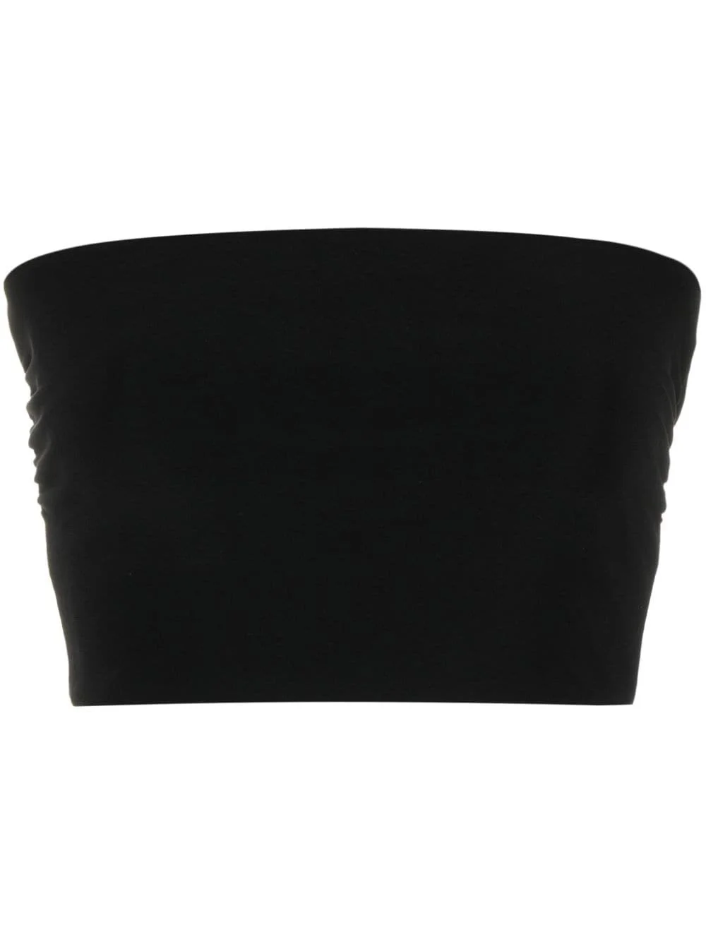 strapless bandeau top Highlights - Black - Stretch-jersey - Ruched detailing - Bandeau style - Square neck - Strapless - Straight hem - Cropped - Full lining Imported Composition Polyester 95%, Spandex/Elastane 5% SIZE & FIT Model measurements Height 5 ft 11 in(1.8 m) Bust/Chest 32.67 in(83 cm) Hips 35.82 in(91 cm) Waist 24.8 in(63 cm) FittingInformation Designed for a close fit throughout Cropped in length Made from a lightweight stretch fabric, this piece offers elasticity and flexibility when worn This piece fits true to size – take your usual size Washing instructions Machine Wash