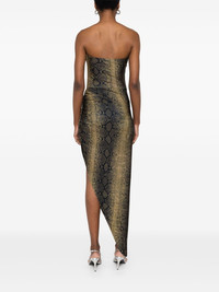 strapless side-drape gown Highlights - Black/dark yellow - Stretch-jersey - Strapless - Side drape detail - All-over python print - Square neck - Ruched detailing - Side slit - Unlined - Asymmetric hem - Long length Imported Composition Polyester 95%, Spandex/Elastane 5% SIZE & FIT Model measurements Height 5 ft 11 in(1.8 m) Bust/Chest 31.49 in(80 cm) Hips 36.61 in(93 cm) Waist 24.4 in(62 cm) FittingInformation Designed for a close fit throughout Made from a midweight stretch fabric, this piece offers elasticity and flexibility when worn Washing instructions Machine Wash