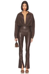 - Shell: 100% polyester Combo: 95% polyester 5% elastane - Hand wash cold - Gusset pull-on styling - Plunging neckline - Split cuffs - Lightweight poplin fabric - style runs large, size down - Revolve Style No. NKAM-WS227 - Manufacturer Style No. ST323BPH183028