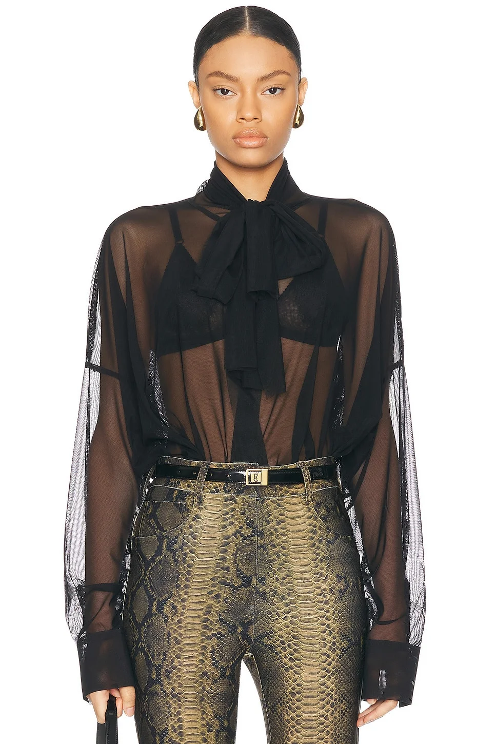 Super Oversized Boyfriend Shirt Bow Bodysuit