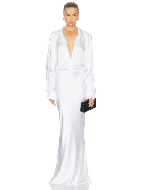 Details - 100% polyester - Hand wash - Partially lined - Front velcro closure - Plunging neckline - Heavyweight satin fabric - Garment is made with a semi-sheer fabric, undergarments can show through - style runs large, size down - Made in China - Our Style No. NOMF-WD672 - Manufacturer Style No. ST3253SAR45944
