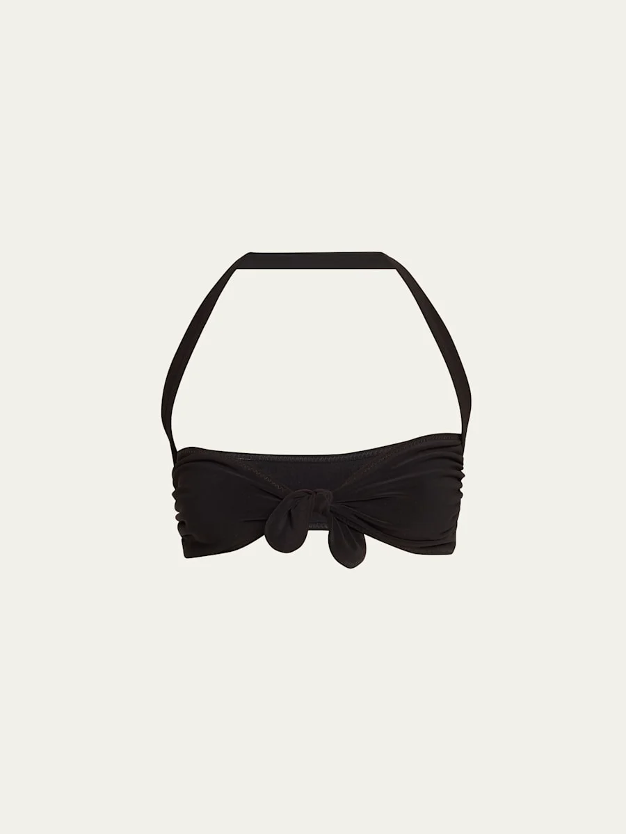 Norma Kamali bikini top. Halter neckline. Self-tie front. Polyester/spandex. Hand wash. Imported. Bottoms sold separately. Online Inquiries: BGS21_T09R2| Store Inquiries: #3389507