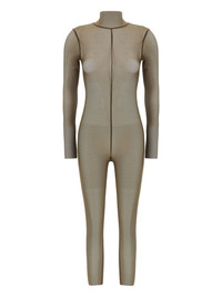 Turtle jumpsuit Highlights - Olive green - Semi-sheer construction - High neck - Long sleeves - Rear zip closure - Raw-cut hem Imported Composition Polyamide 82%, Elastane 18% Washing instructions Read Manufacturer Guidelines