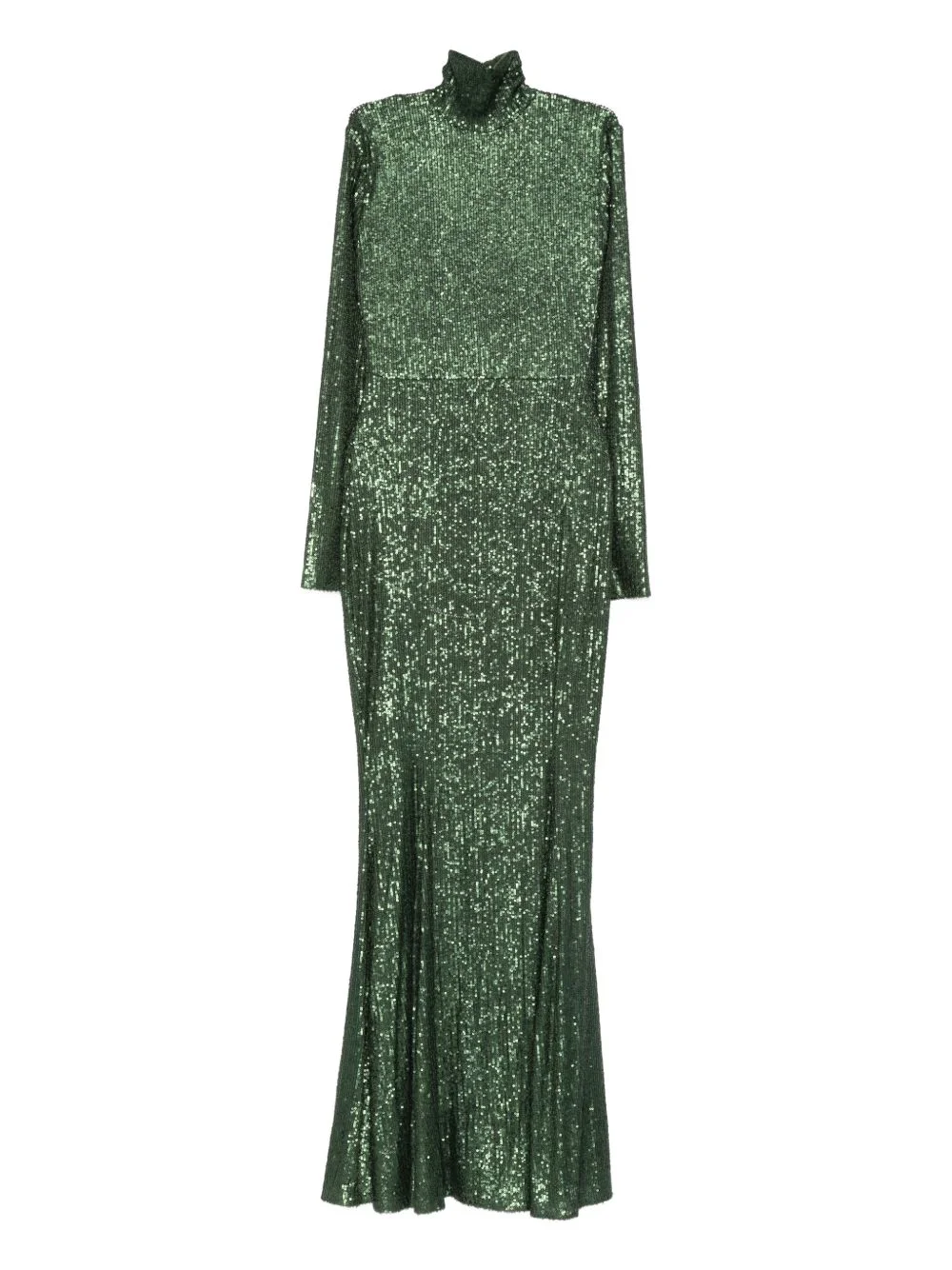 turtleneck fishtail maxi dress Highlights - Green - Sequin embellishment - Turtleneck - Long sleeves - Fishtail hem Imported Composition Polyester 95%, Spandex/Elastane 5% SIZE & FIT Model measurements Height 5 ft 10 in(1.78 m) Bust/Chest 33.46 in(85 cm) Hips 36.22 in(92 cm) Waist 23.22 in(59 cm) Washing instructions Dry Clean Only