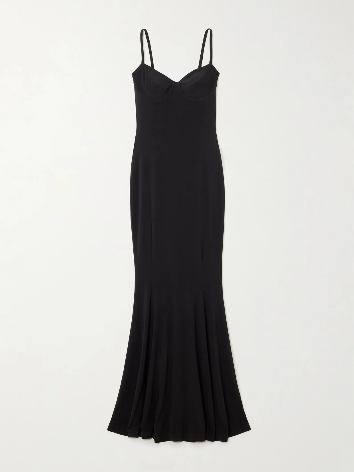 Norma Kamali's maxi dress is a true celebration of the form. It's cut close from smooth stretch-jersey that hugs through your hips before flaring out to a fishtail hem. The underwired cups provide light support, so you can go without a bra.
