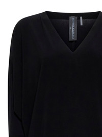 V-neck sweater Highlights - Black - Drop shoulder - Long sleeves - Straight hem Imported Composition Polyester 95%, Spandex/Elastane 5%