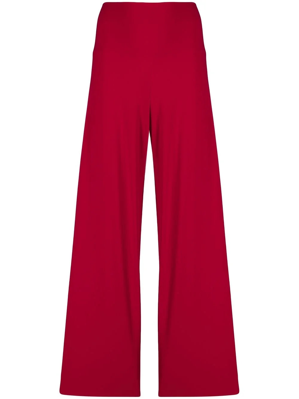 wide-leg flared trousers red wide leg flared high waist elasticated waistband Imported Composition Polyester 95%, Spandex/Elastane 5% SIZE & FIT Model measurements Height 5 ft 10 in(1.78 m) Bust/Chest 32.28 in(82 cm) Hips 35.82 in(91 cm) Waist 24.8 in(63 cm) Washing instructions Hand Wash