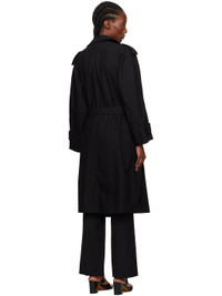 Cotton-blend twill trench coat. · Spread collar with hook-eye fastening · Double-breasted button closure · Welt pockets at waist · Belt loops with detachable belt at waist · Buttoned epaulets · Raglan sleeves · Buttoned tab at cuffs · Welt pocket at interior · Full satin lining Supplier color: Black Body: 74% cotton, 26% polyester. Lining: 50% viscose, 50% polyester. Made in South Korea 252814F067000