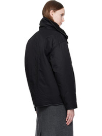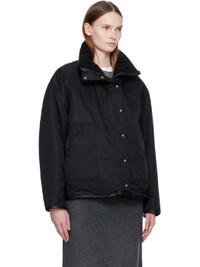 Reversible cotton twill jacket. Reverse in brown faux-shearling. · Faux-leather piping at stand collar, hem, and cuffs · Two-way zip closure with press-stud placket · Patch pockets at waist · Concealed bungee-style drawstrings at hem · Welt pockets at interior Supplier color: Black Body: 66% cotton, 34% nylon. Lining: 100% polyester. Made in South Korea 252814F063004