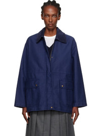 ROKAL cotton moleskin jacket. · Corduroy spread collar · Concealed zip closure with press-stud placket · Flap pockets at waist · Adjustable press-stud cuffs · Full twill lining · Antiqued gold-tone hardware Supplier color: Blue 100% cotton. Made in South Korea 252814F063001