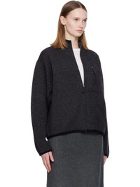 Knit stretch wool-blend sweater. · Stand collar · Zip closure · Zip pocket at chest · Seam pockets at waist · Elasticized hem and cuffs Supplier color: Charcoal Body: 50% wool, 35% nylon, 15% polyester. Trim: 100% spandex. Made in South Korea 252814F097000