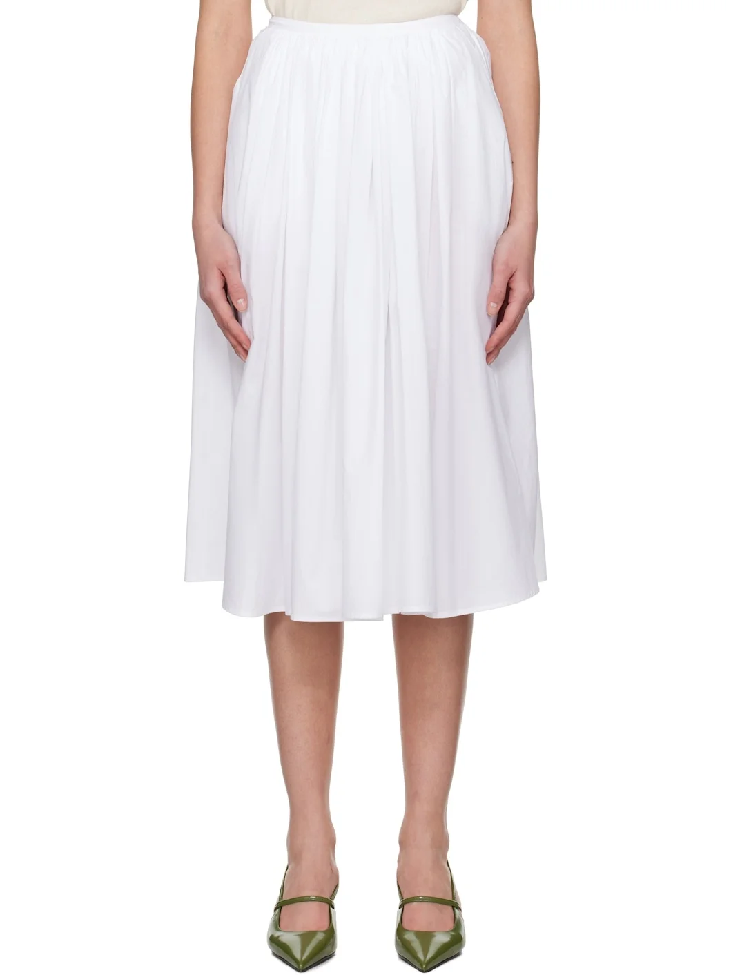Cotton poplin midi skirt. Gathering throughout. · Two-pocket styling · Adjustable button fastening at waistband · Zip closure at side seam · Unlined Supplier color: White 100% cotton. Made in South Korea 251814F092001