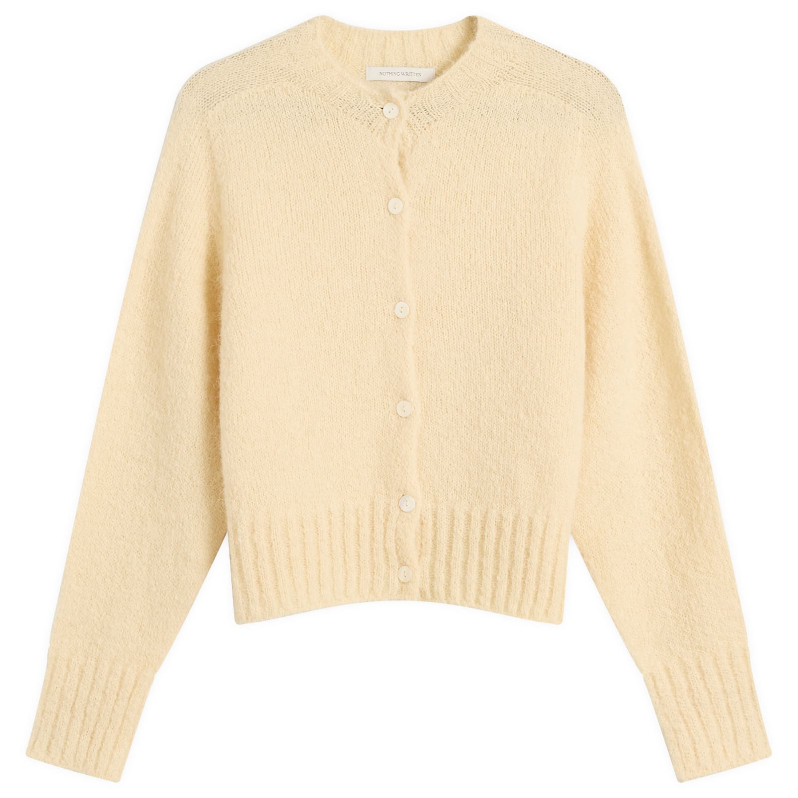 NOTHING WRITTEN brings its signature Seoul-rooted minimalism to this cosy alpaca-blend cardigan. Made using a seamless whole-garment knit technique, it offers a smooth, natural fit with ribbed edges at the hem and cuffs. Texture-rich and easy to wear, it’s a refined staple designed to elevate your everyday wardrobe. - 65% Alpaca, 22% Acrylic, 11% Nylon, 2% Polyurethane - Button Closure - Ribbed Hem & Cuffs - Style Code: NW25PF-1017