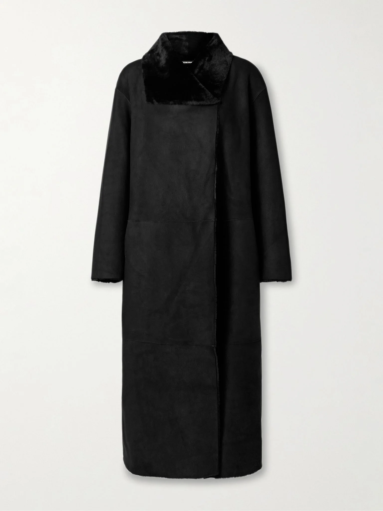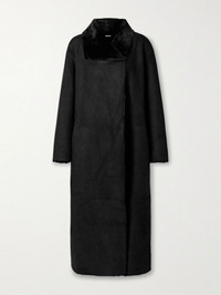 Nour Hammour's collections include investment-worthy outerwear, like this 'Merinos' coat, which you'll look forward to wearing every winter. It's made from soft, naturally insulating shearling and has an oversized fit that allows for easy layering over even your chunkiest knits. Lower-Impact Materials. This product is made using at least 50% lower-impact materials or ingredients. Find out more about our NET SUSTAIN criteria here. Size & Fit - Fits true to size, take your normal size - Intended to be oversized; we recommend sizing down if you prefer a closer fit - Designed to be worn multiple ways - Supple, non-stretchy shearling - Model is 177cm/ 5'10" and is wearing a size X-Small Details & Care - Black shearling - Concealed hook fastening at front - 100% shearling (Lamb) - Specialist clean - By purchasing this product, you are supporting responsible leather manufacturing through Leather Working Group.