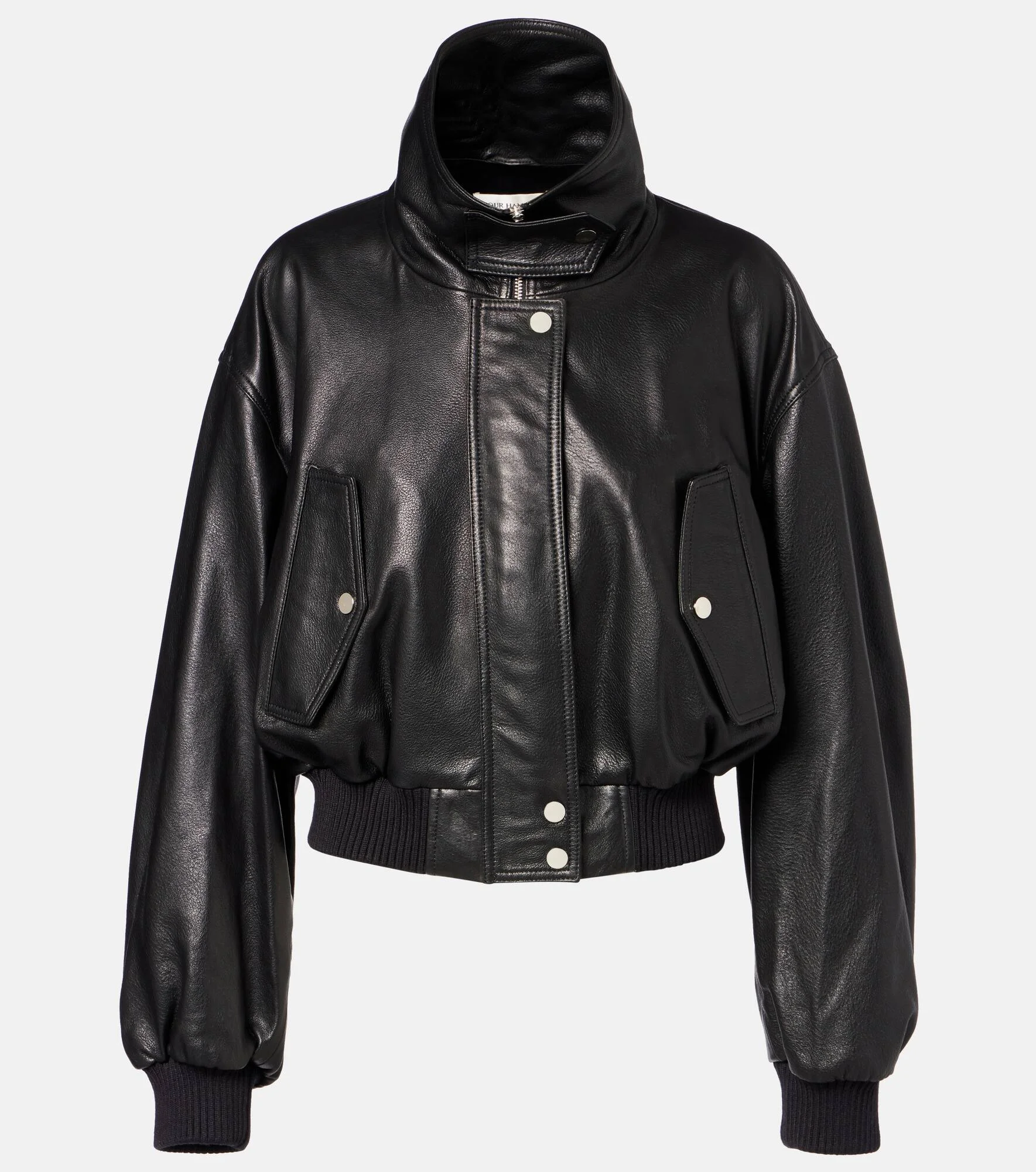 Nour Hammour's female-gaze approach to leatherworking brings a new, contemporary edge to outerwear favorites. The Briar leather bomber jacket has a turtleneck, angled chest pockets, and a zipper and snap-button fastening. Product Details - Material: 100% lamb leather - Care instructions: specialist clean - Made in Turkey - Designer color name: Black Leather - Item color: black - Lining: 100% rayon - Closure: zipper, snap-button fastenings - Collar: turtleneck - Cuff: ribbed, elasticated - Pockets: angled chest pockets - Hem: ribbed, elasticated - Fully lined - Item number: P01060712 Size & Fit - True to size - Dropped shoulders - Cinched waist - Elasticated hem - Non-stretchy fabric - Falls to the hip - The model seen in the picture is 178cm-5'10" and wearing a size XS