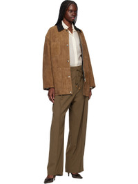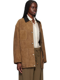 Lambskin suede jacket. · Buffed leather spread collar · Zip closure with press-stud placket · Patch pockets · Dropped shoulders · Fully lined Supplier color: Tobacco suede/Black Body: 100% lambskin. Lining: 63% cupro, 37% viscon. Made in Turkey 251306F064028