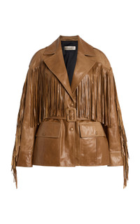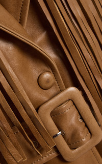 Nour Hammour’s artisanal focus on luxury outerwear secures its place as favorite amongst fashion enthusiasts worldwide. The Female-led brand has gone on to empower women not only through their designs and silhouettes, but through their practices. ‘Cassidy’ is a belted utilitarian jacket, updated this season by oversized fringing across the profile and sleeves. It has a close fit with an adjustable belt to cinch the waist. Style with denim during the day, then swap them out for fitted maxi skirts at night. PRODUCT DETAILS - Resort ‘26 - Press-stud fastening - Composition: 100% lambskin - Dry clean - Designer Color: Dune Patina - Imported SIZE & FIT - Our model is wearing a size Small - Model is 5'10" with a 30" bust, 24" waist, and 34" hip