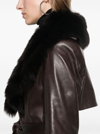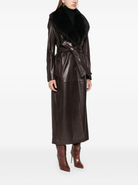 Dakota coat Highlights - Dark brown - Lambskin - Smooth grain - Front button fastening - Detachable fur collar - Notched lapels - Long sleeves - Belt loops - Detachable and adjustable waist tie - Two side welt pockets - Central rear vent - Full lining - Straight hem - Ankle-length Imported Composition Outer: Lamb Fur 100%, Lambskin 100% Lining: Cupro 63%, Viscose 37% SIZE & FIT Model measurements Height 5 ft 9 in(1.75 m) Bust/Chest 31.88 in(81 cm) Hips 34.64 in(88 cm) Waist 24.01 in(61 cm) FittingInformation Designed for a slim fit that sits just away from the body offering a close yet comfortable fit The tie fastening gives an adaptable and personalised fit Soft leather has a supple and smooth construction offering some flexibility This piece fits small – take one size up Washing instructions Specialist Cleaning