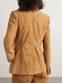 Double-breasted Paneled Asymmetric Brushed-suede Blazer