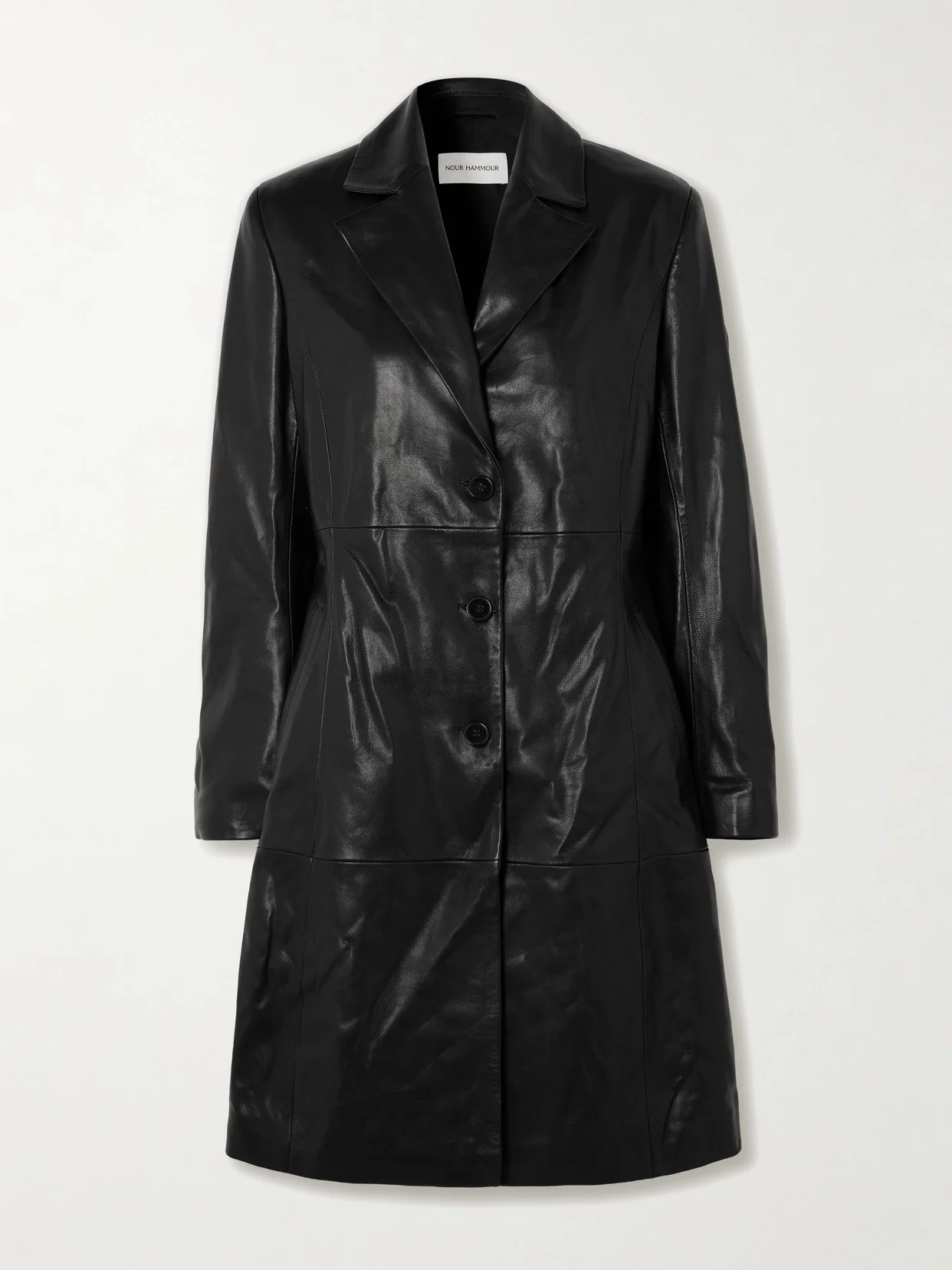 Just like the iconic chair it's named after, Nour Hammour's 'Eames' coat is crafted from supple leather. Defined by an elongated profile, it's mapped with precise seams and framed by sharp lapels. A smooth lining ensures it sits neatly and comfortably over shirts or knitwear. Lower-Impact Materials. This product is made using at least 50% lower-impact materials or ingredients. Find out more about our NET SUSTAIN criteria here.