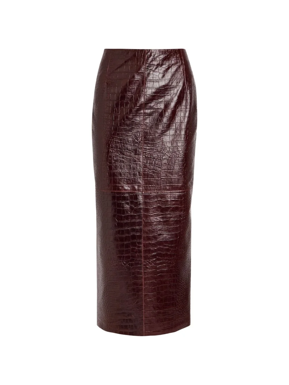Elyse crocodile-effect midi skirt Highlights - Brown - Embossed crocodile effect - Panelled construction - Rear zip fastening - Straight hem Imported Composition Lambskin 100% Washing instructions Specialist Cleaning