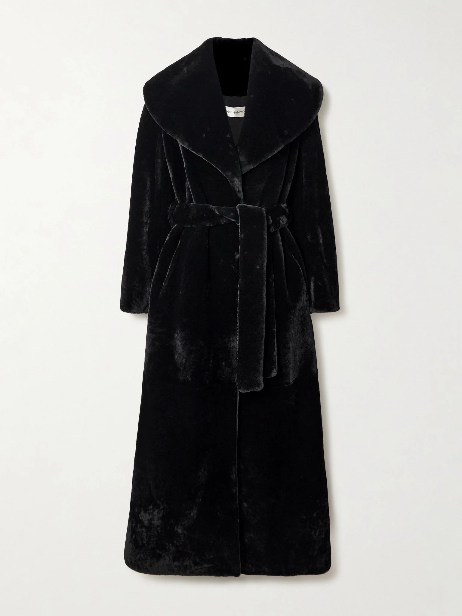 Nour Hammour's coat is made from plush shearling, so it's super cozy to wrap up in. It has a broad shawl collar and a tie belt to gently define the shape. We love it with knee boots and leather gloves. Size & Fit - Fits true to size, take your normal size - Designed for a loose fit - Supple, non-stretchy shearling - Model is 177cm/ 5'10" and is wearing a size Small Model measurements: - Bust: 81cm/ 32" - Waist: 64cm/ 25" - Hip: 89cm/ 35" Details & Care - Black shearling - Concealed hook fastenings through front - 100% shearling (Lamb); lining1: 63% cupro, 37% viscose; lining2: 100% silk - Fully lined - Specialist clean
