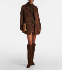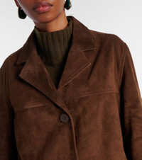 Crafted from velvety-soft suede, the Gotham coat by Nour Hammour exudes timeless elegance. Effortlessly sophisticated, this piece features a buttoned front, flap pockets, and buttoned cuffs — a refined staple for elevated outerwear. Product Details - Material: 100% lamb leather (suede) - Care instructions: specialist clean - Made in Turkey - Designer color name: Brunette Suede - Item color: brown - Closure: concealed buttoned front - Pockets: flap pockets - Sleeves: long-sleeved - Cuff: three buttons - Lining: 100% rayon - Contains non-textile parts of animal origin - Item number: P01060705 Size & Fit - True to size - Dropped shoulders - Designed for a loose fit - Non-stretchy fabric - Falls below the hip - The model seen in the picture is 178cm-5'10" and wearing a size FR 36