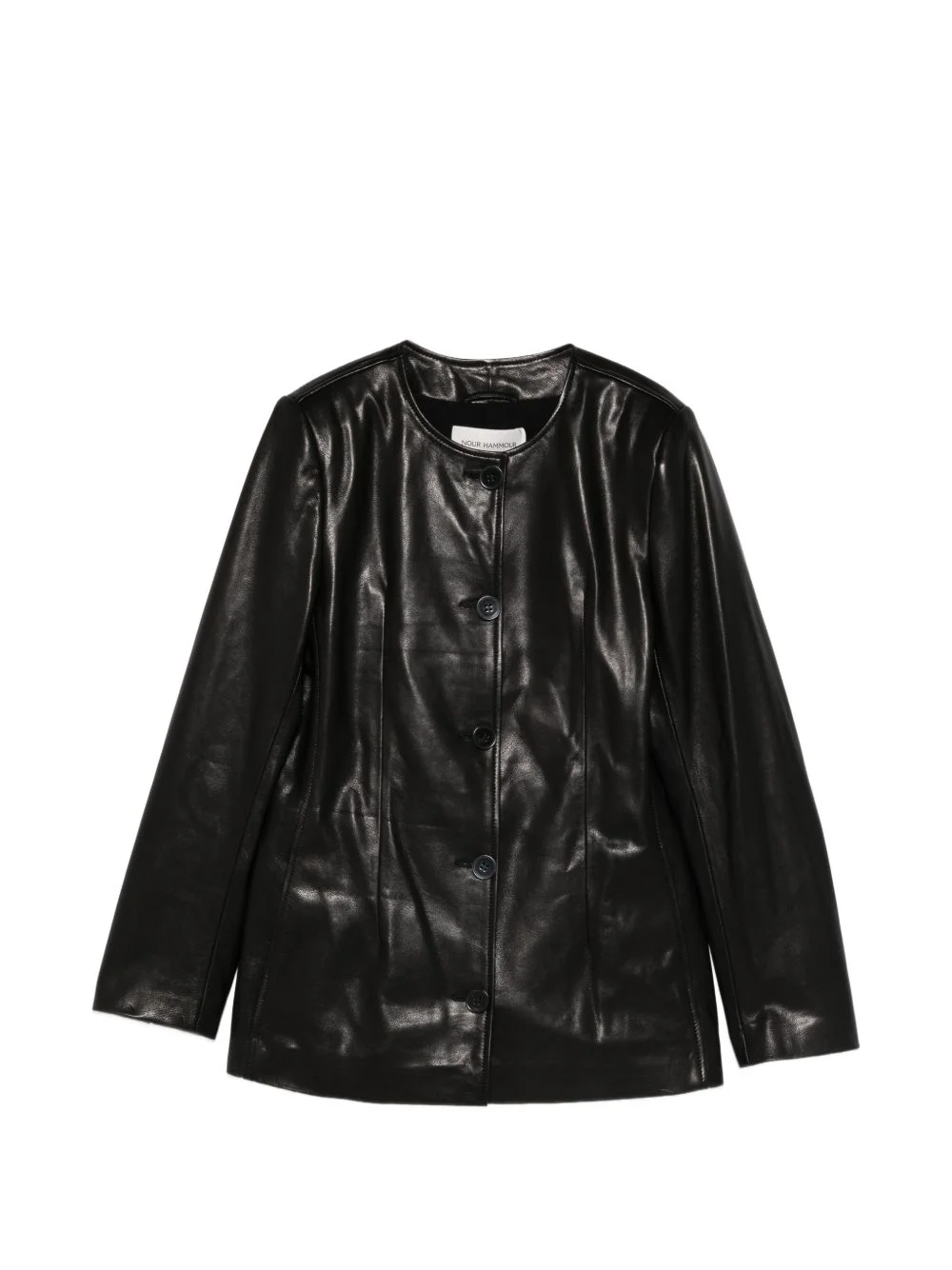 Maud button-up leather jacket Highlights - Black - Button fastening - Round neck - Long sleeves - Fitted waist - Lined Imported Composition Outer: Lambskin 100% Lining: Silk 100%, Cupro 63%, Viscose 37% Washing instructions Read Manufacturer Guidelines