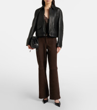 Nour Hammour's distinctive approach to leatherworking brings a contemporary edge to each design. Showcasing a flattering wide-leg silhouette, the Milo pants are crafted from soft suede and paneled for a structured fit. Product Details - Material: 100% lamb leather (suede) - Care instructions: specialist clean - Made in Turkey - Color: brown - Designer color name: Marron Profond - Closure: zip and button fastening - Belt loops - Pockets: five pockets - Item number: P01136167 Size & Fit - True to size - Non-stretchy fabric - Wide-leg - High-waisted - The model seen in the picture is 178cm-5'10" and wearing a size FR 36