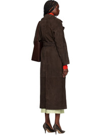 Lambskin suede jacket. · Notched lapel · Belt loops with detachable self-tie belt · Seam pockets · Central vent at back hem · Fully lined Supplier color: Mocha Body: 100% lambskin. Lining: 63% cupro, 37% viscon. Made in Turkey 251306F064031