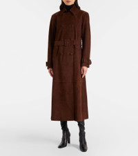 Nour Hammour's female-gaze approach to leatherworking brings a new, contemporary edge to outerwear favorites. The Tate trench coat is made from suede and features a double-breasted silhouette, a belted waist, and a wide collar. Product Details - Material: 100% lamb leather (suede) - Care instructions: specialist clean - Made in Turkey - Color: brown - Designer color name: Acajou - Lining: 63% cupro, 37% viscose - Sleeve lining: 63% cupro, 37% viscose - Cuff: strap, buckle and loops - Pockets: welt pockets - Detachable belt - Closure: double-breasted - Long vent - Item number: P01136083 Size & Fit - True to size - Shoulder pad inserts - Loose fit, comes with belt - Non-stretchy fabric - The model seen in the picture is 178cm-5'10" and wearing a size FR 36