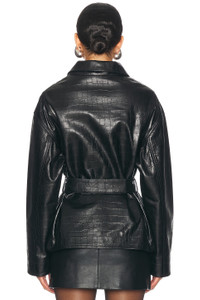 Details - Self: 100% lambskin - Lining: 63% cupro, 37% viscose - Made in Turkey - Professional leather cleaning only - Hidden front zipper and button snap closure - Optional belt at waist - Genuine croc-embossed leather - Our Style No. NHAM-WO123 - Manufacturer Style No. TILDA