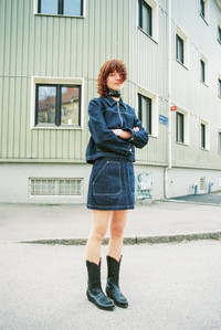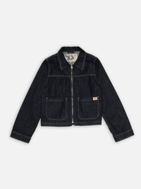 Anja features a short and boxy regular fit, sewn with off-white thread and adorned with straight yokes and patch-on pockets. It’s a skillful nod to simplistic workwear, with a contemporary twist. Details - Organic cotton - 14.2 oz. Rigid denim - Off-white thread at seams - Stainless steel zip - Stainless steel buttons - Woven patch - Regular fit 100% Cotton Made in TN Anja features a short and boxy regular fit, sewn with off-white thread and adorned with straight yokes and patch-on pockets. It’s a skillful nod to simplistic workwear, with a contemporary twist. The denim features a deep blue tone, capturing the essence of pure indigo-dyed 'redcast' denim. Its slubby, irregular yarns pay homage to early 20th-century denim, offering a modern interpretation that bridges vintage inspiration with contemporary relevance. Striking from the start, this jacket is designed to age gracefully, developing rich textures and unique character with every wear and wash—ultimately becoming even more beautiful over time.