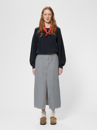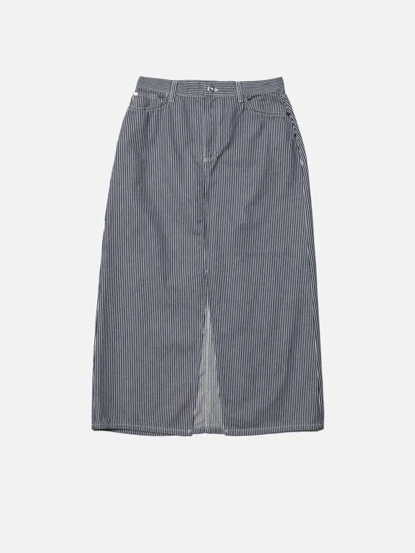 Anna is a high-waisted, regular-fit denim skirt with tall silhouette and front slit for unrestricted movement. Crafted from organic cotton. Size & Fit Model is wearing size: S Model's height: 176cm / 5’9” Details - Organic cotton - 10.3 oz. Rigid denim - Cream thread at seams - Copper trims - Regular fit - High waist 100% Cotton Made in TN Anna is a high-waisted, regular-fit denim skirt with a tall silhouette and a flattering cut. Designed with a front slit for unrestricted movement, it's crafted from crisp hickory stripe denim, exuding an elegant workwear-inspired style. A gentle wash has pronounced the denim's texture and softens its feel.