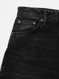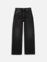 High-waist, loose-fit jeans with a high waist, featuring a saturated and beautifully textured black wash. Crafted from exceptional black-overdyed-black denim with pronounced slubbiness, the wash reveals a striking salt-and-pepper grain and a subtle crosshatch texture. While showcasing contrasts, the wash retains deep pitch-black tones, resulting in a wonderfully rich and dynamic black finish. Details - Organic cotton - 13 oz. rigid denim - Black threads at seams - Stainless steel button - Copper rivets - Zip fly - Jacron patch - Loose fit - High waist - Wide leg - Wide leg opening 100% Cotton Made in TN High-waist, loose-fit jeans with a high waist, featuring a saturated and beautifully textured black wash. Crafted from exceptional black-overdyed-black denim with pronounced slubbiness, the wash reveals a striking salt-and-pepper grain and a subtle crosshatch texture. While showcasing contrasts, the wash retains deep pitch-black tones, resulting in a wonderfully rich and dynamic black finish.