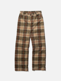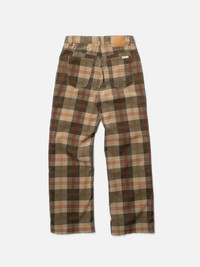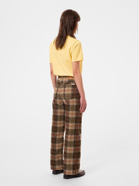 High waist loose fit pants with a wide leg made in 12-wale organic cotton corduroy with an all-over tartan check print. Size & Fit Model is wearing size: S Details - Organic cotton Cotton 100% Made in PT Here's an extra special treat for your wardrobe. It will definitely feel revived by these checked pants made in 12-wale organic cotton corduroy. To get a neat finish trough and trough, the fabric has been dyed in a mellow olive green shade and then allover printed with a tartan check. The result is an flirtation with the 60s and British mods. You won't go unnoticed wearing these pants. They're both fun and elegant. We added a garment wash for a vintage feeling. The fit is loose, with a high waist and wide leg.