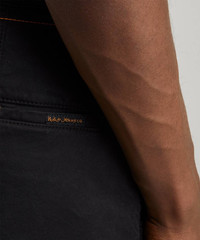 Editor's Notes Featuring a form flattering slim fit and versatile black colourway, the Easy Alvin chinos deserve a spot in every fashion forward male’s everyday edit. Expertly crafted using a premium organic cotton composition, these chinos evoke a fusion of style, quality and comfort. The inclusion of four pockets and zip fly closure imbue a functional touch, while the stretch twill fabric ensures unwavering comfort and fit. Delicately detailed with painted waistband button, these chinos promote a refined update of an everyday style staple. Partner with a classic white crewneck t-shirt and statement red sneakers for an effortlessly voguish attire. Features Easy Alvin black chinos Black colourway Slim tapered leg Zip fly closure Woven patch Four pockets Organic cotton composition SIZE & FIT Model is 186cm/6'1"; Chest: 92cm; Waist: 71cm and wears size 32 Composition & Care 97% Cotton; 3% Elastane Machine washable About Nudie Jeans Nudie founder Maria Erixon was drawn to designing jeans due to their inclusivity – denim is wearable for all ages and genders. Launched in Gothenburg, Sweden in 2001, Nudie focused on 100% organic cotton denim, specialising in dry denim - aka pre-washed and pre-distressed – the Holy Grail for denim fanatics. Nudie Jeans are broken-in according to your lifestyle, the cracks and fading across the indigo dye keep a journal of days gone by. Today the Italian-produced brand has expanded across a full clothing range, each piece displaying Nudie’s inherent timeworn character.