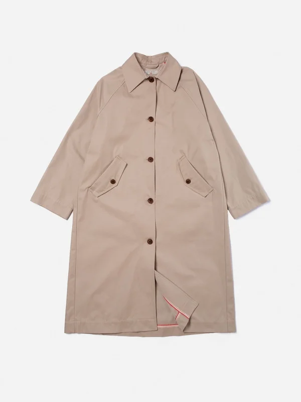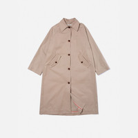 Elegant single-breasted coat crafted in tightly woven organic cotton twill. Loose fit. Size & Fit Model is wearing size: S Model's height: 176 cm / 5’ 9.5” Details - Organic cotton - Unlined - Piped seams - Corozo buttons - Loose fit 100% Cotton Made in PT Elegant single-breasted coat crafted in a tightly woven fabric with a fine twill line structure. The cotton used is 100% organic, of course. A roomy slip-in pocket is hidden behind the pocket flap. The coat is unlined, and all the seams are neatly piped with red and white herringbone tape. Inside, you also find a patch pocket for your phone or other small belongings.