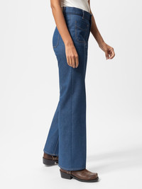 Regular-fit yokeless pants with a high waist and wide leg in muted light blue indigo denim. Featuring front patch pockets and press creases, the stiff denim evolves into softer, brighter blue hues with wear. Made from organic cotton. Size & Fit Model is wearing size: W27" L32" Model's height: 179 cm / 5’10” Details - Organic cotton - 12.5 oz. Rigid denim - Tobacco thread at seams - Vintage inspired stainless steel button - Zip fly - Four pockets - Jacron patch - Regular fit - High waist - Wide leg - Wide leg opening 100% Cotton Made in IT This is our take on western-style pants—a yokeless regular fit with a wide leg and a high waist. Featuring front-facing patch pockets and press creases for precision, these pants offer an authentic touch. The creases are non-permanent and fade over time. To maintain their sharpness and achieve retro-vintage fades, press or iron them occasionally. Crafted from muted light blue indigo dyed denim, they pay homage to the playful denim aesthetics of the '70s. Constructed with slightly irregular yarns at a fairly high density, the denim boasts a pleasing tone and stiff hand. With wear and washing, it softens and ages, gradually evolving to even brighter blue hues.